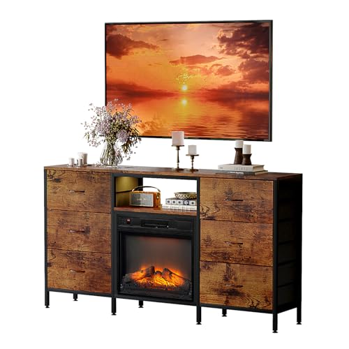 3. VINGLI Fireplace TV Stand Dresser with Fabric Drawer for up to 70” TV